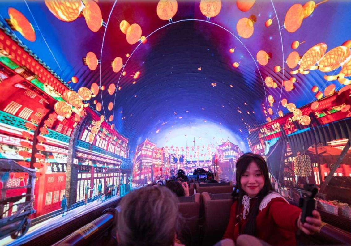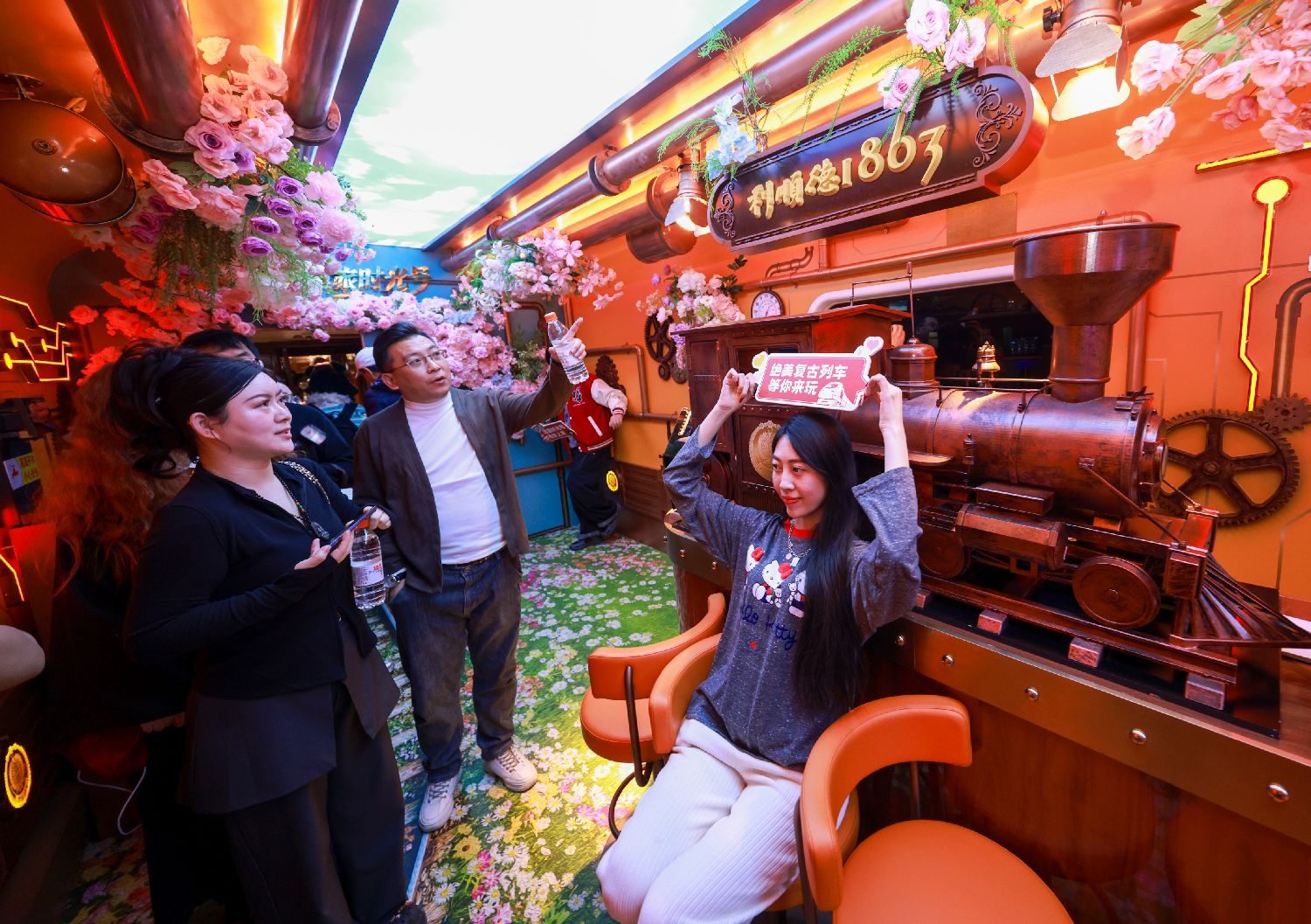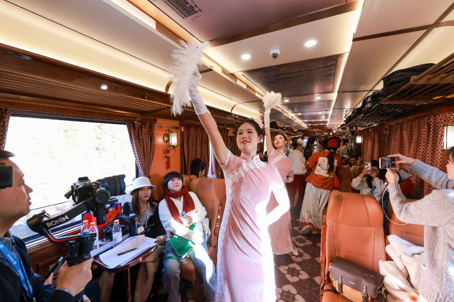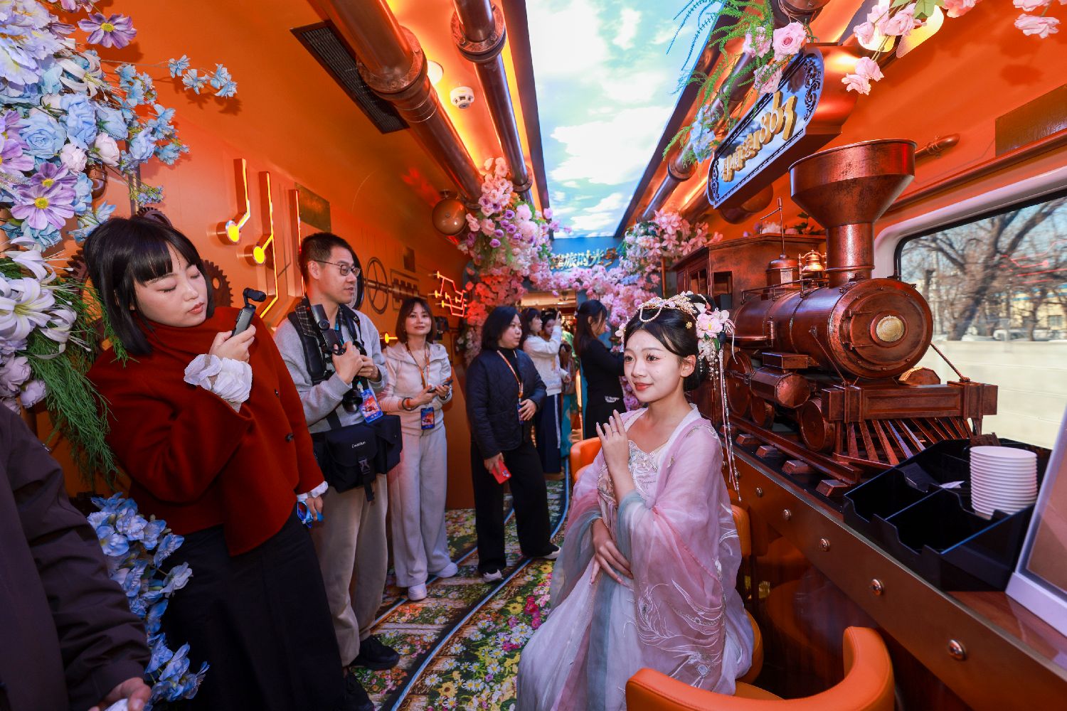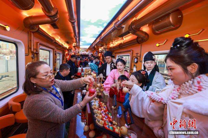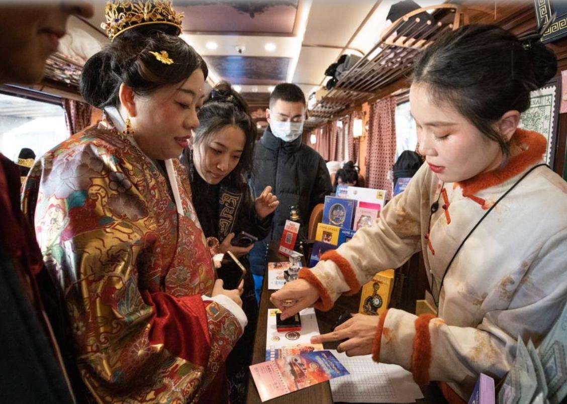 旅客在列车上沉浸式体验京津文化特色。新华社