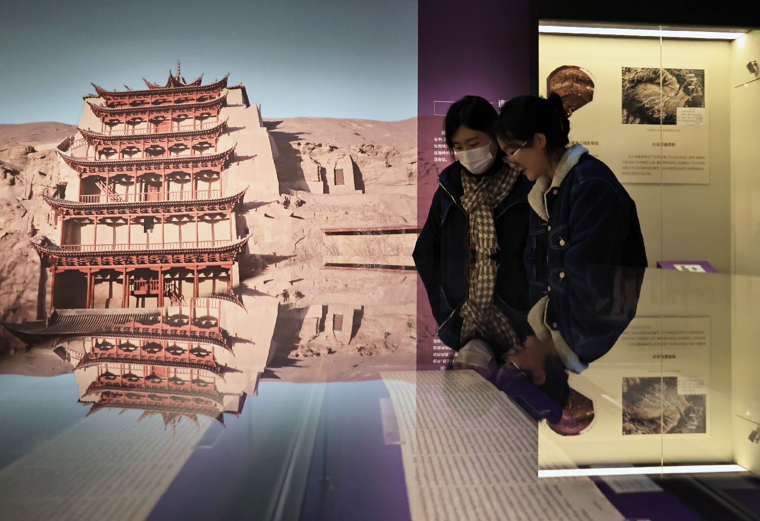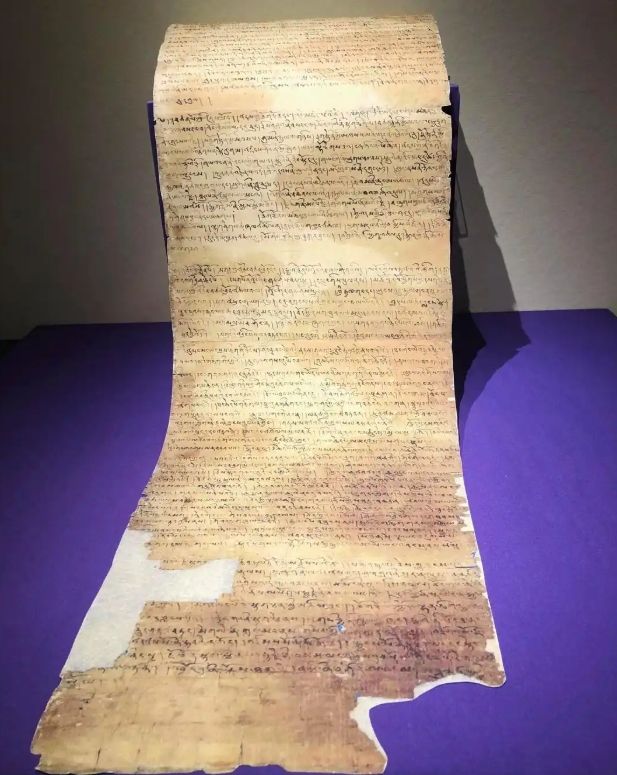1月4日,四川成都,在四川博物院展出的《雪山之巅大河之源——青藏高原的文明崛起与民族融合》特展吸引参观者。该展览汇聚了29家文博机构的425余件(套)珍贵文物,系统展示了青藏高原文明演进与民族交往、交流、交融的历程。图为参观者观看莫高窟经卷。中新社