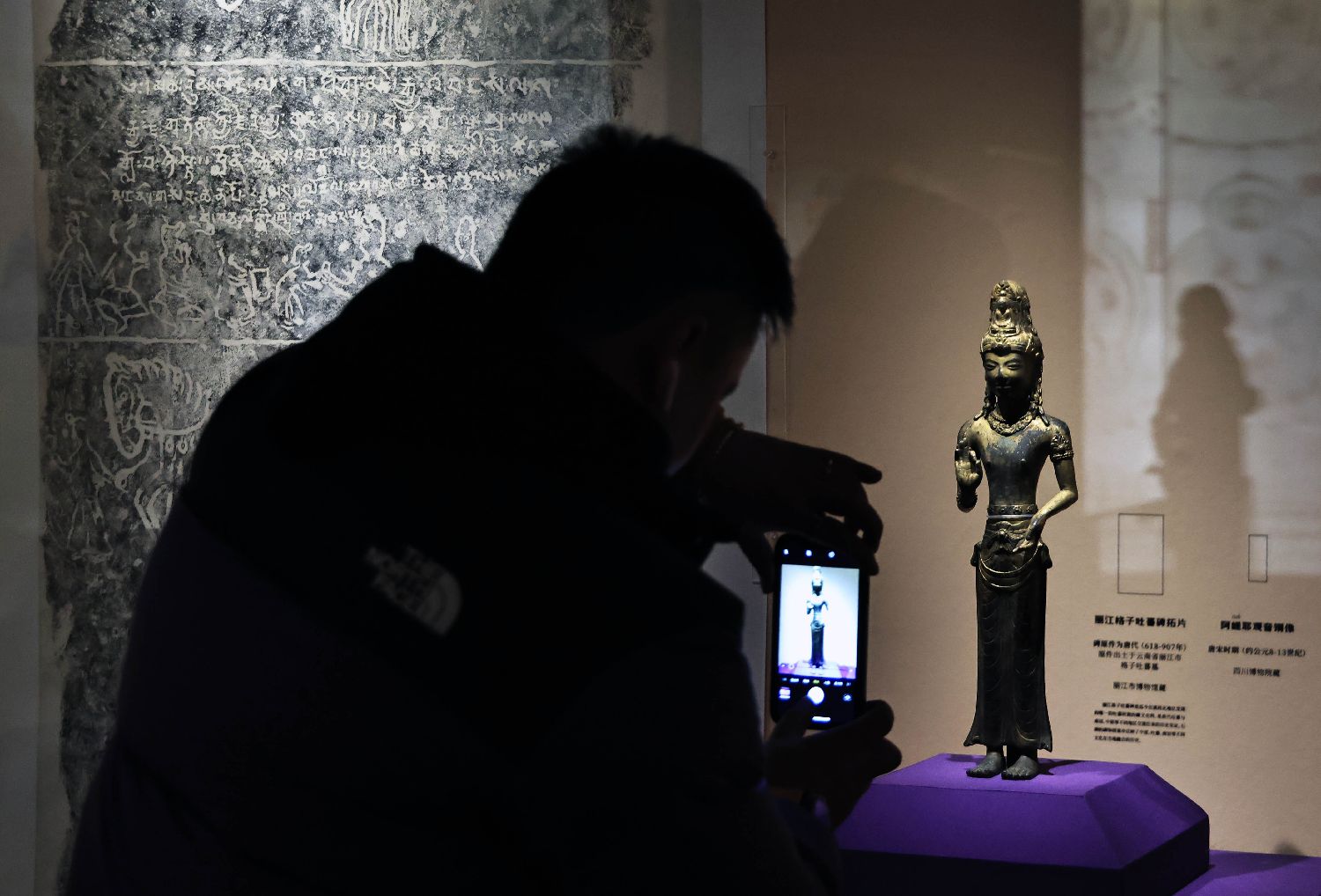 参观者拍摄唐宋时期的观音铜像。中新社