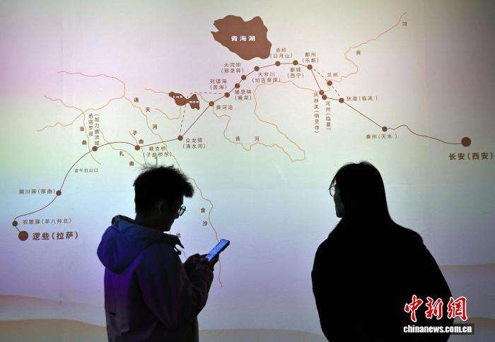 参观者观看唐蕃古道路线示意图。中新网
