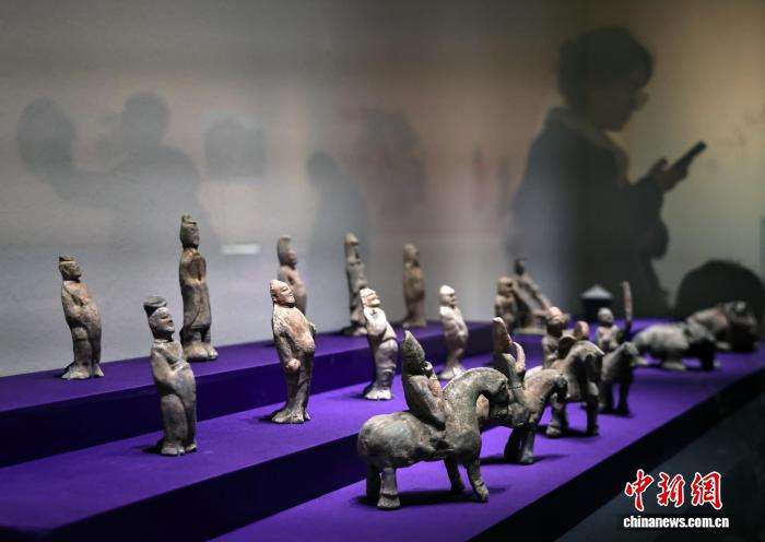 参观者观看西魏时期的陶俑。中新网