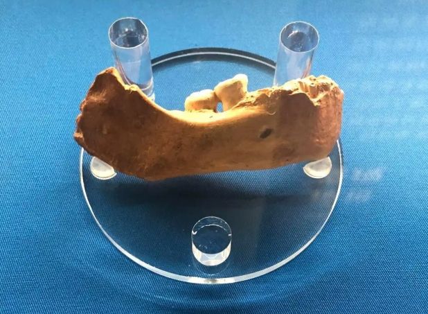 “夏河人”下颌骨化石(复制品)。红星新闻