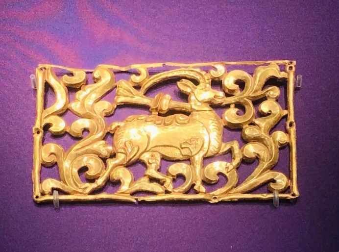 都兰热水墓地(血渭1号墓)出土的大角鹿金牌饰。红星新闻