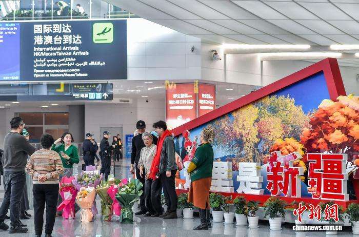 1月4日,新疆乌鲁木齐天山国际机场,由42名旅居土耳其的新疆籍侨胞组成的探亲团抵达乌鲁木齐,接机的侨胞亲属献上鲜花,并亲切拥抱,欢迎他们回到家乡。此次探亲活动由中国驻伊斯坦布尔总领馆和中共新疆维吾尔自治区党委统战部共同组织,旨在深化海外新疆籍侨胞与家乡的情感纽带,让他们亲身感受家乡的发展成就。中新社
