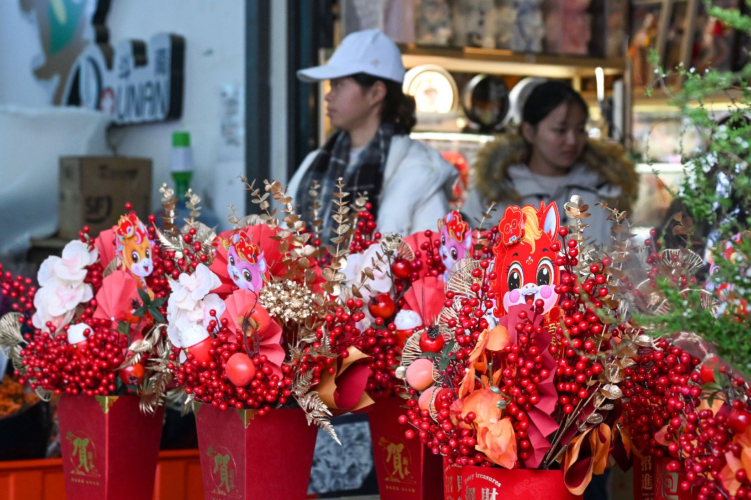1月7日,云南昆明斗南花市内售卖的年宵花篮。中新社