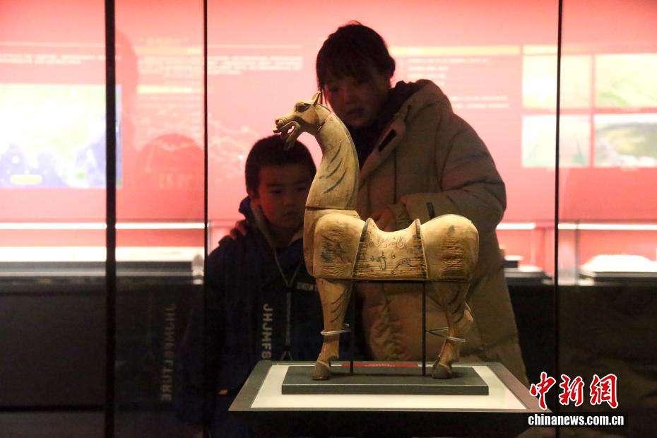 1月7日,市民参观青海省博物馆展出的汉代木马。中新网