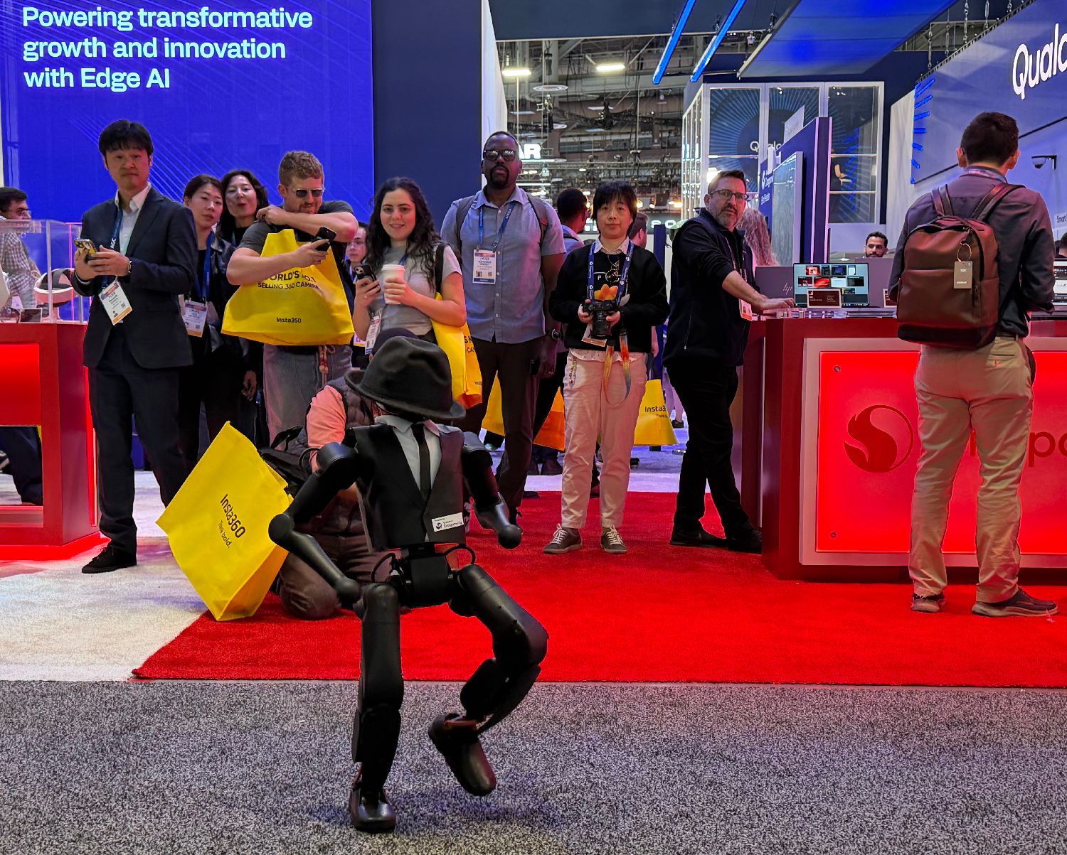 模仿迈克尔·杰克逊跳舞的机器人吸引参观者驻足观看。