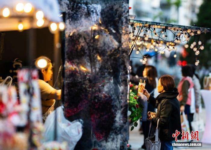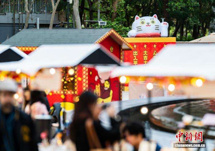 市集上设有“招财猫”充气装置吸引到访者“打卡”。中新网