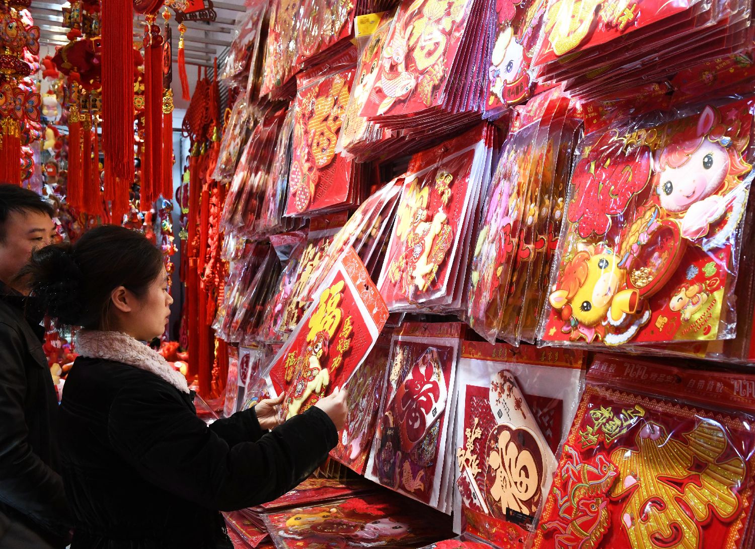 1月12日,市民在重庆一批发市场选购新春饰品。中新社