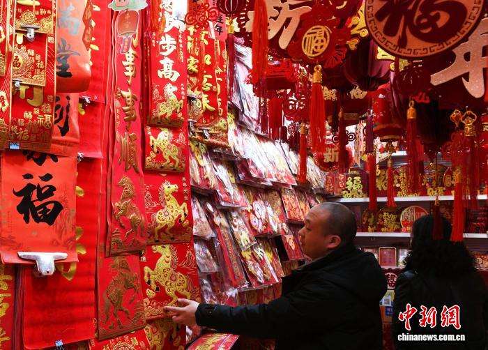 1月12日,民众选购春节对联。中新网