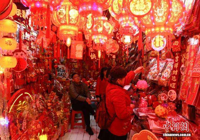 1月12日,民众选购春节灯饰。中新网