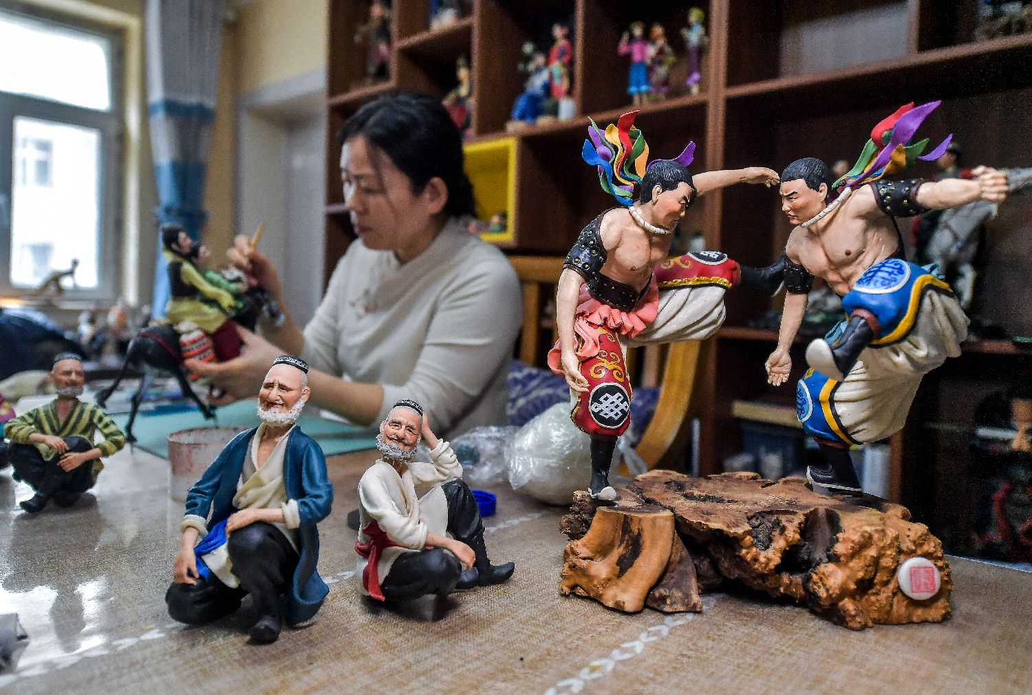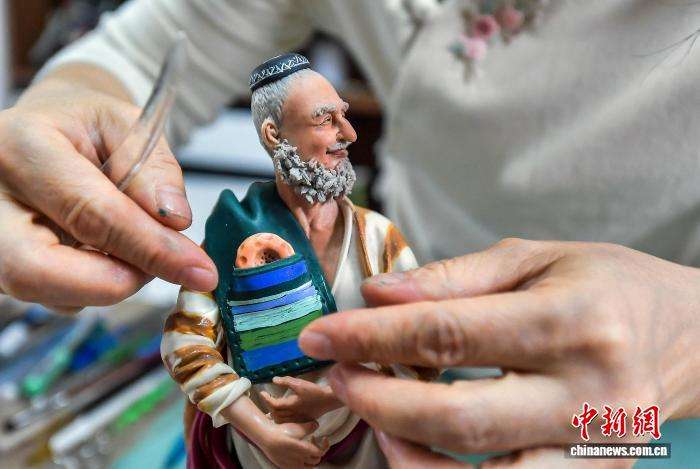 1月14日,王帆创作新疆民族题材的面塑作品。中新网