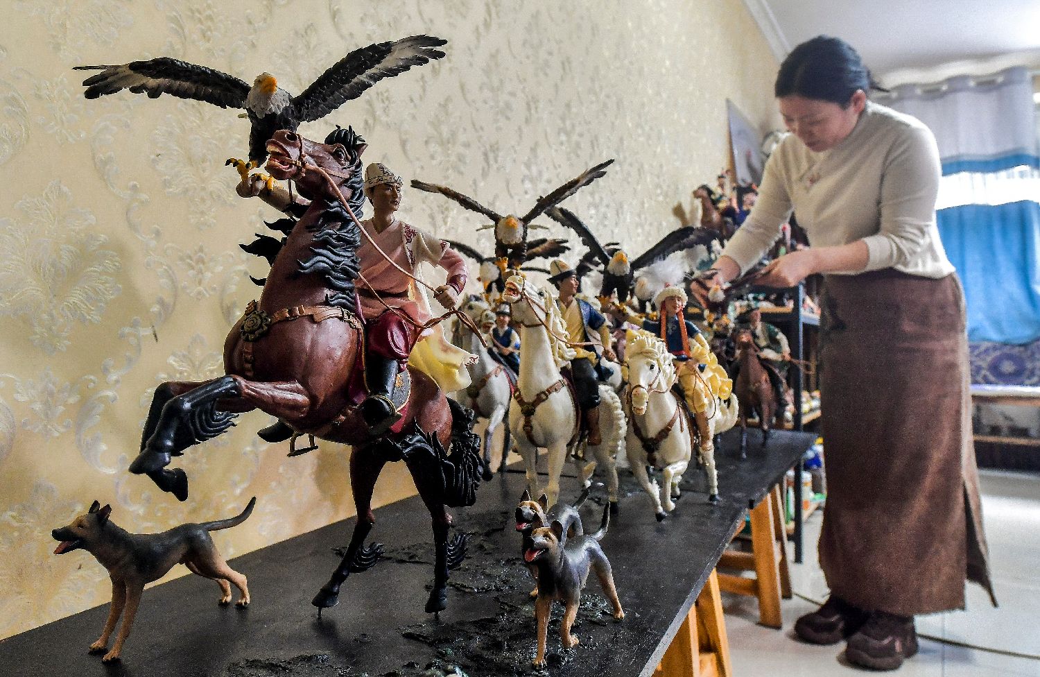 1月14日,王帆在工作室整理面塑作品《鹰舞天山》,该作品2025年获得第五届“百鹤杯”工艺美术设计创新大赛“百鹤新锐奖”。中新社
