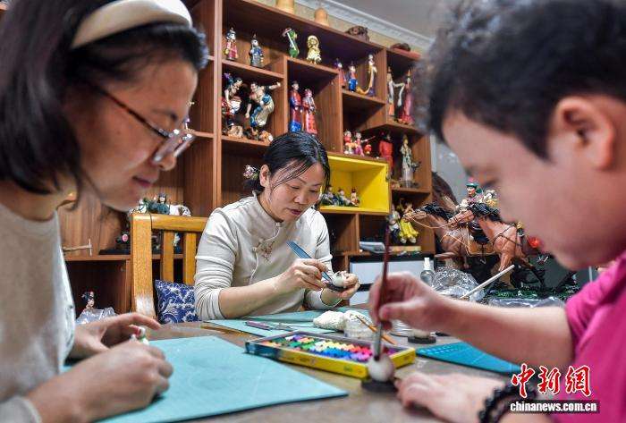 1月14日,王帆在工作室给社区居民传授面塑技艺。中新网
