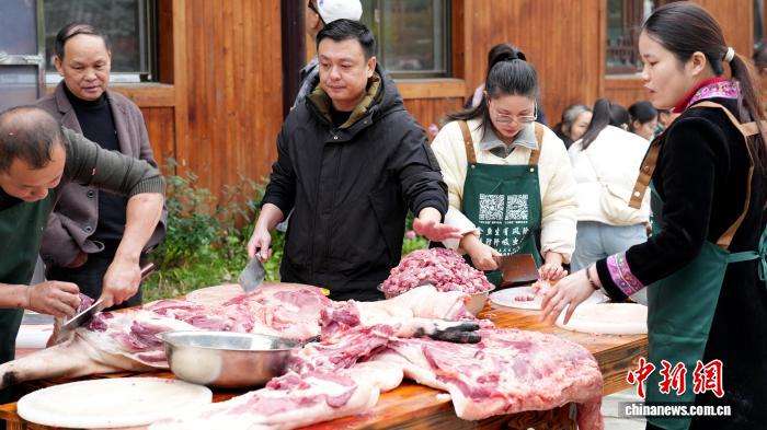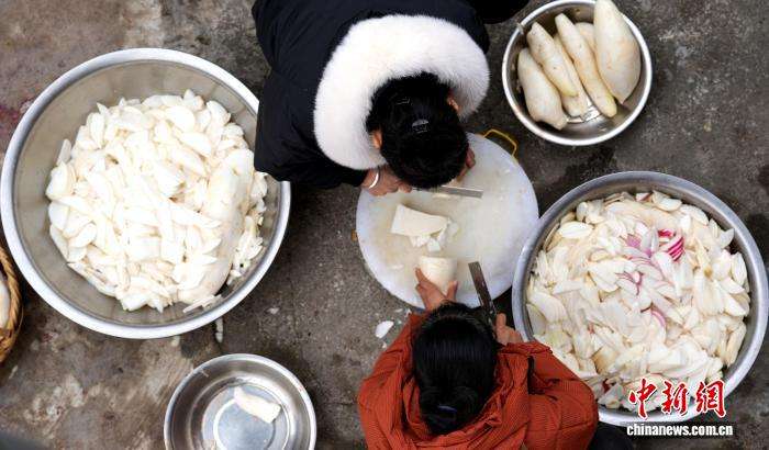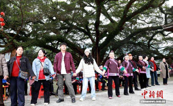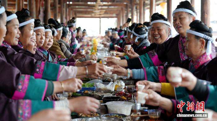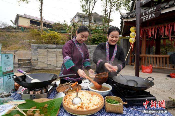 1月15日,广西三江侗族自治县三江口生态旅游区在良口乡产口村举办“新年吃刨汤”活动,当地民众以杀年猪、吃刨汤、捶糍粑、文艺表演、多耶等节目,吸引游客前往观赏体验,现场热闹非凡。图为村民正在打油茶。