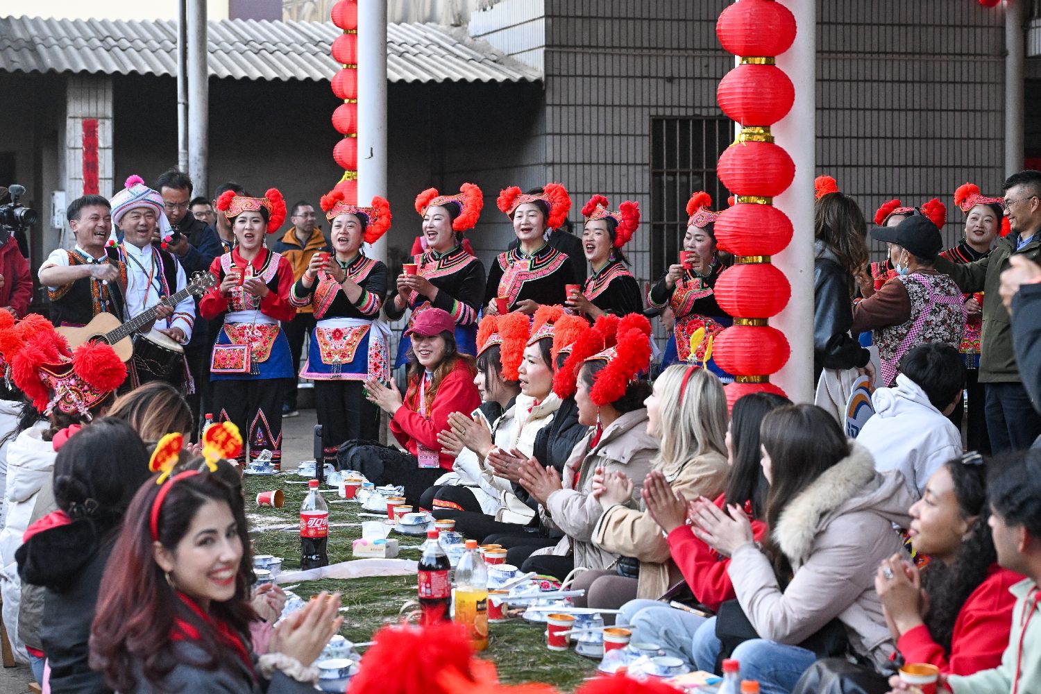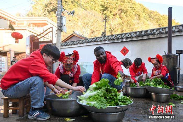 1月19日,“汉语桥”选手与大墨雨村村民共同为晚饭做准备。中新网