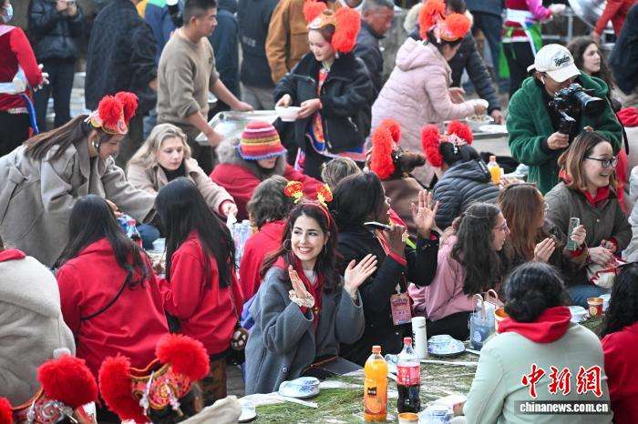 1月19日,“汉语桥”选手共同品味民族菜。中新社