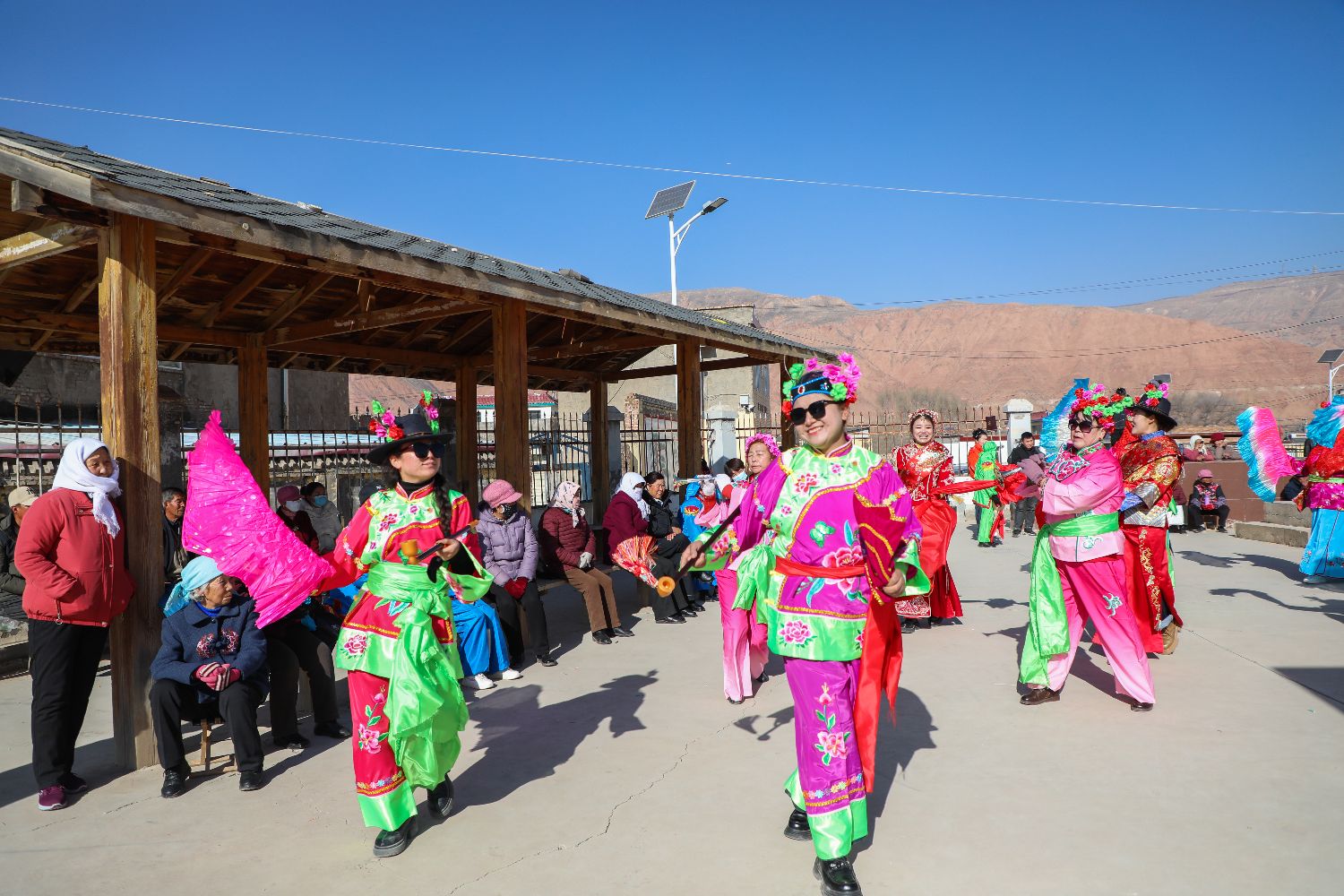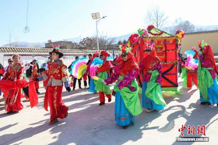 随着中国马年春节脚步临近,青海基层组织的文艺表演也进入紧张排练中。图为1月22日,在青海湟中,民众参与传统社火排练。中新社