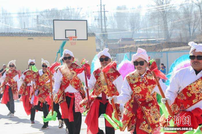 1月22日,青海湟中,民众参与传统社火排练。中新网