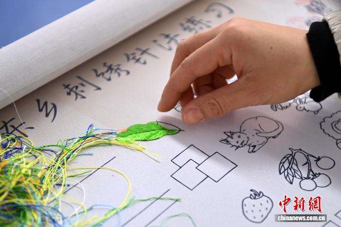 东乡绣娘进行刺绣针法练习。中新网