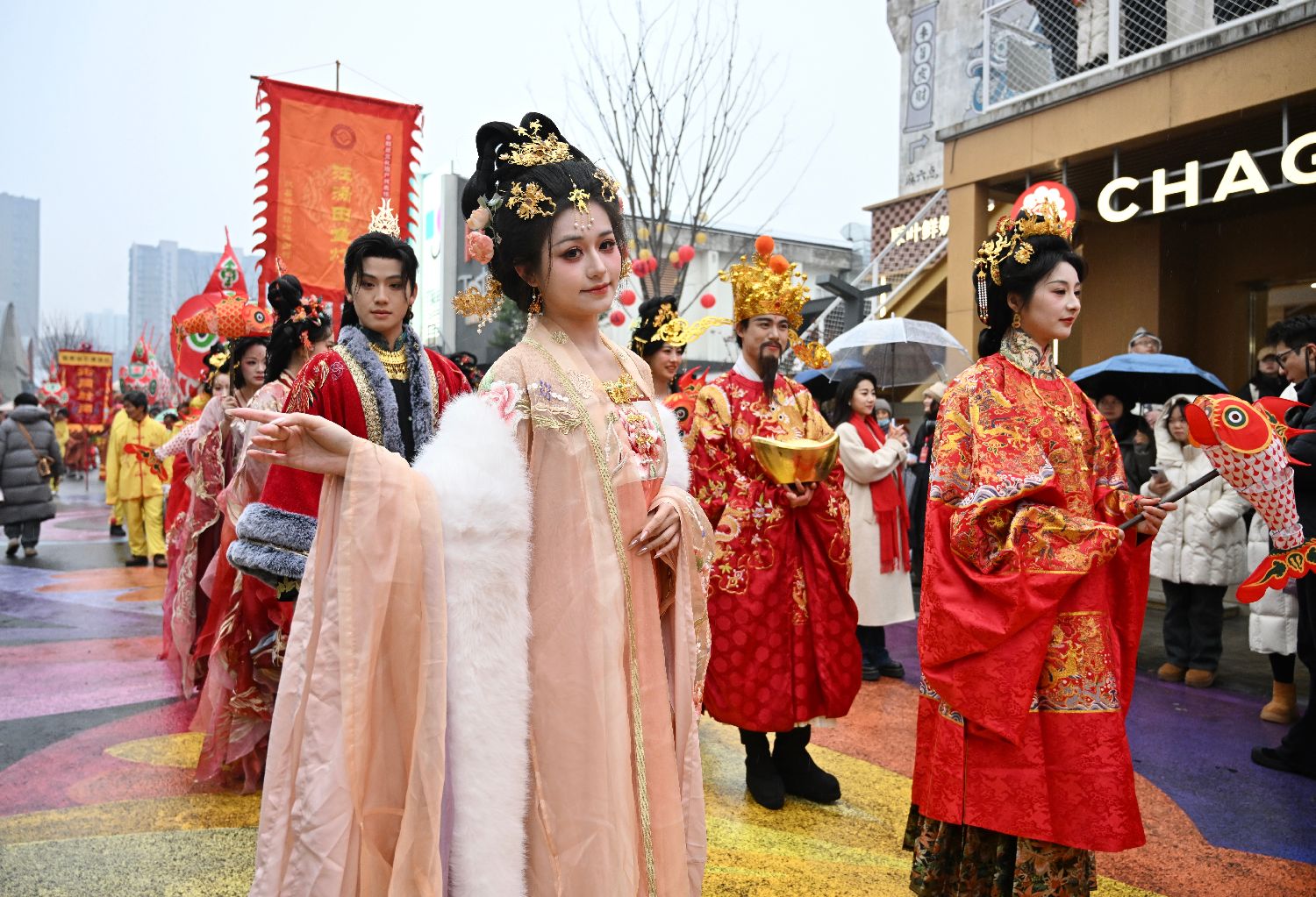 众多身穿不同形制、款式、元素服饰的演员参与新春巡游。中新社