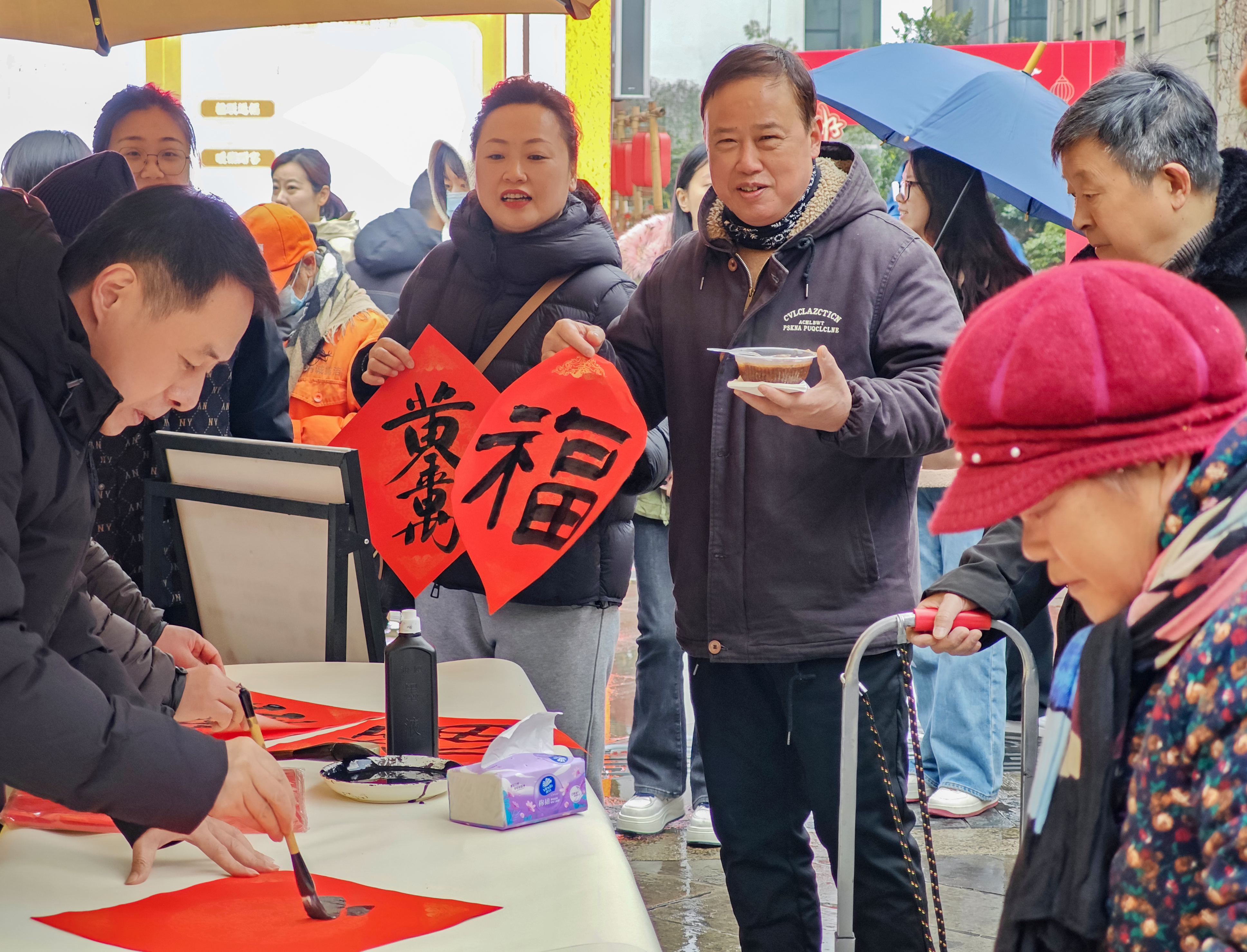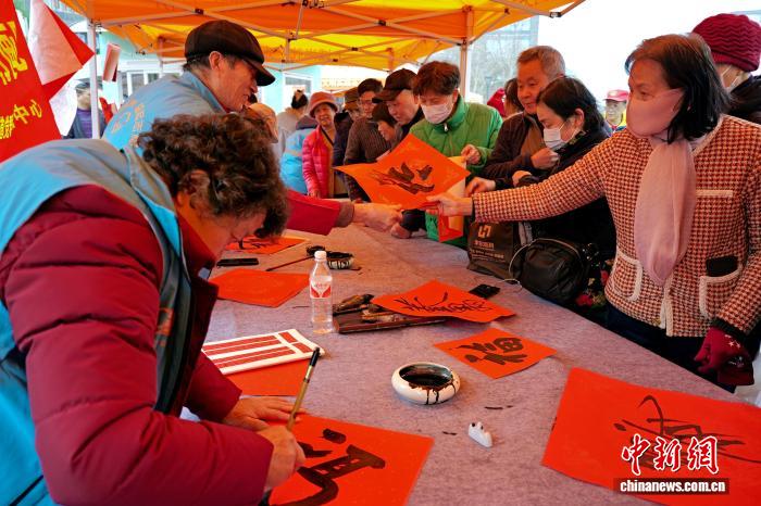 1月26日,在杭州市上城区清波街道新时代文明实践所,市民、游客领取福字。中新网