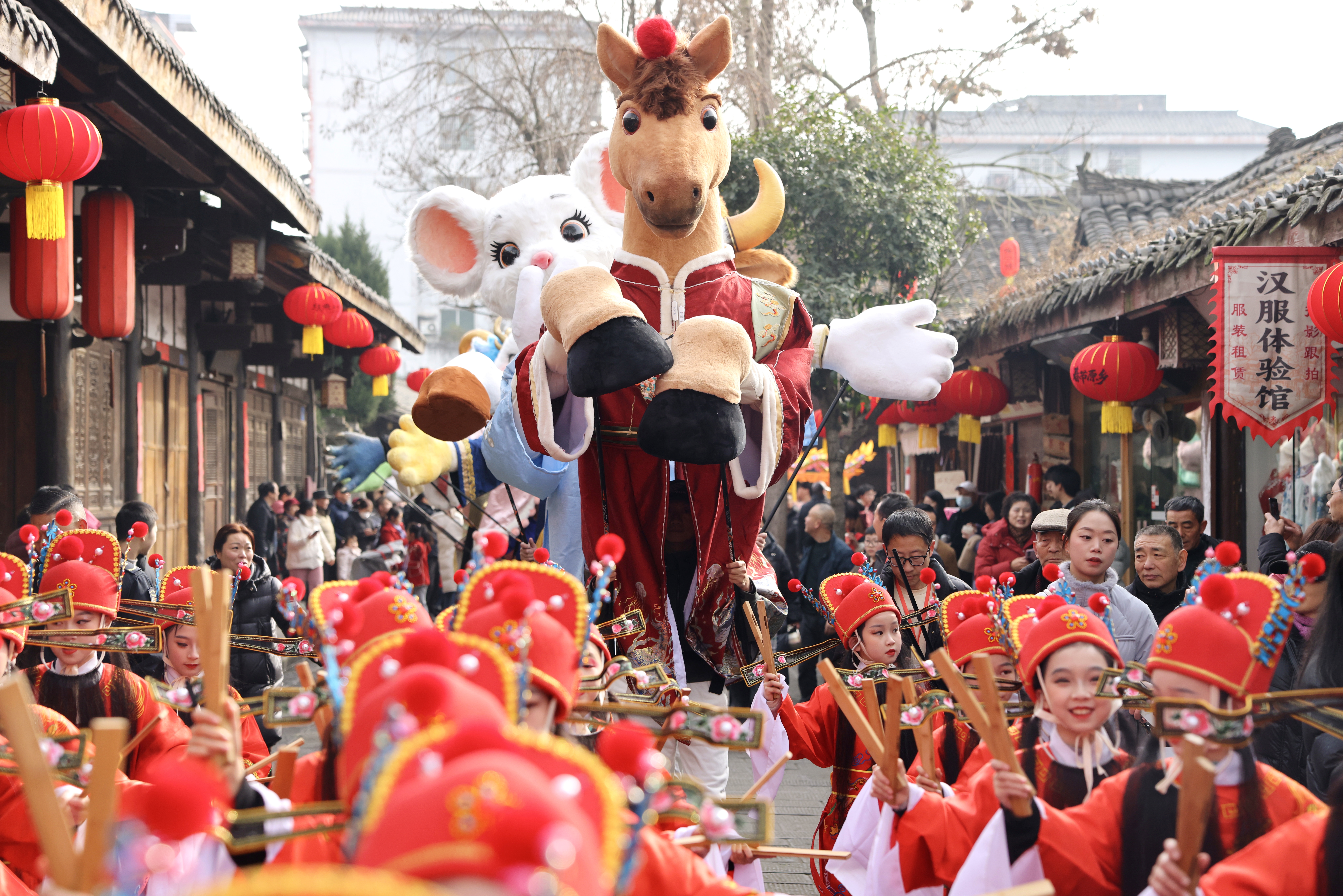 1月26日,十二生肖偶在四川阆中古城中巡游。中新社