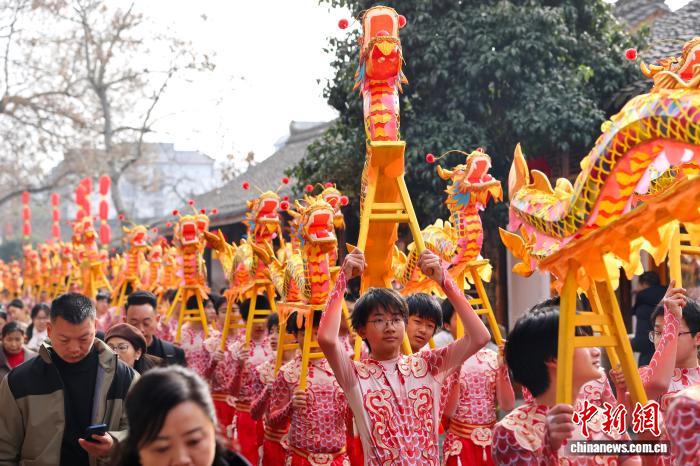 1月26日,板凳龙在四川阆中古城巡游。中新网