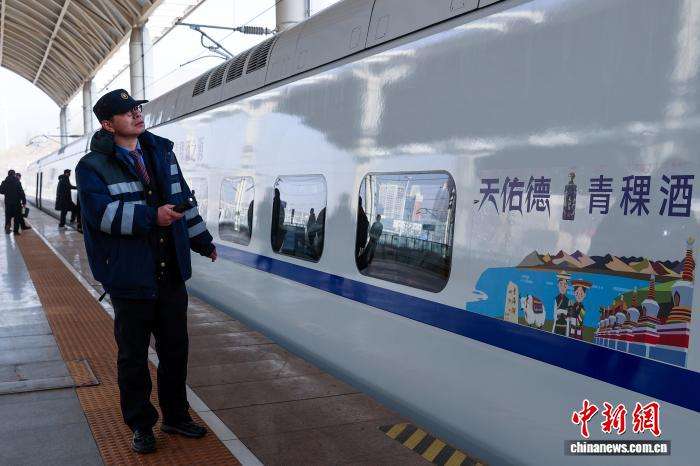 1月26日,青海西宁至北京北首次开行动车组列车。图为随车机械师在发车前检查车况。中新网