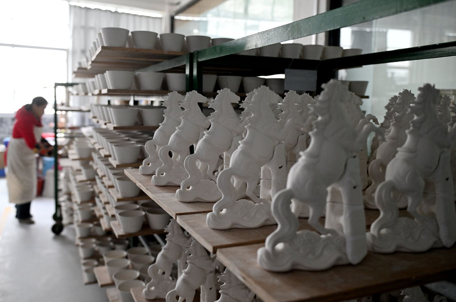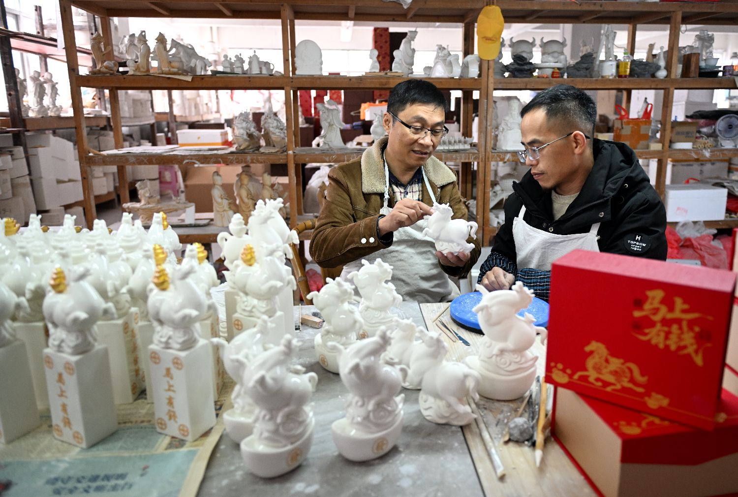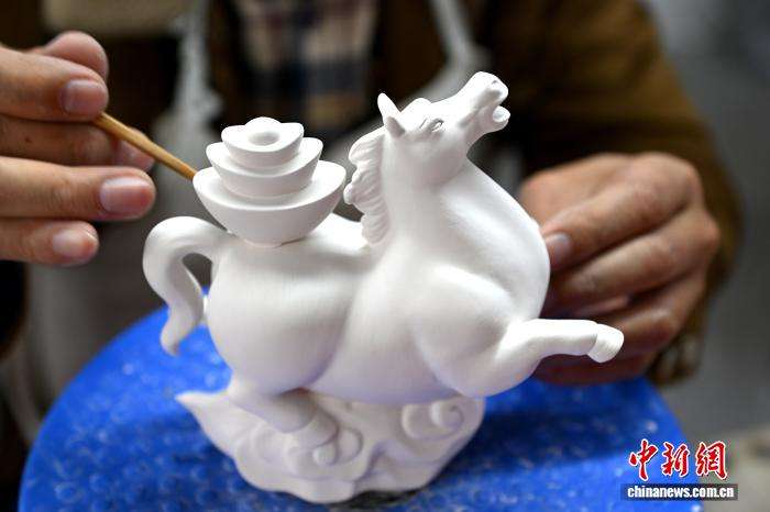 中国农历马年春节临近,以马为造型的陶瓷制品成为年货市场的热销品类,让传承千年的陶瓷艺术在新春消费热潮中焕发新活力。在“世界陶瓷之都”福建德化,从融入科技元素的年轻化设计,到坚守手工技艺的经典创作,多家陶瓷企业推出的生肖瓷产品,不仅畅销中国市场,还远销海外。图为1月23日,泉州顺美集团有限责任公司工人在车间制作生肖瓷。中新社