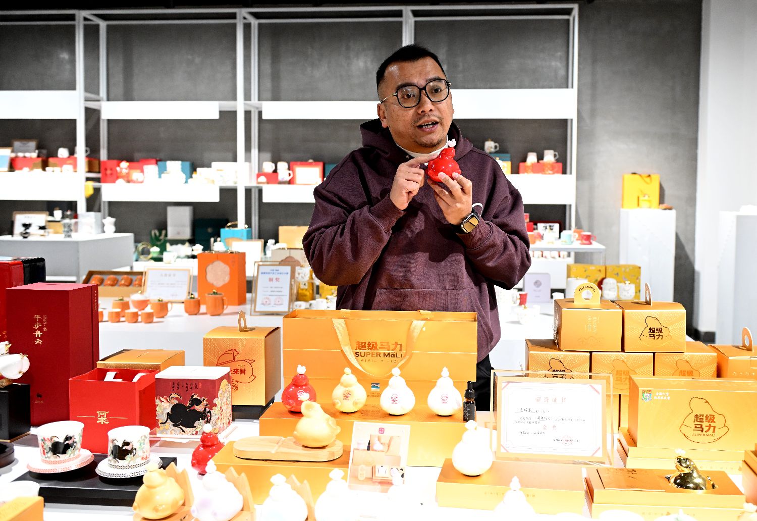 1月23日,周德健介绍“马上有钱”生肖瓷。周德健表示,充满吉祥寓意的“马”让产品设计有更多可能,也更接近当代年轻人的审美与期盼。中新网