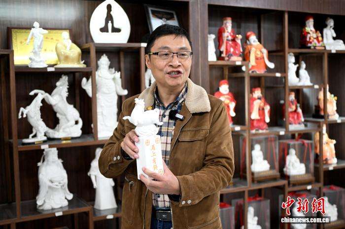 1月23日,周德健正在工作室制作生肖瓷。中新网