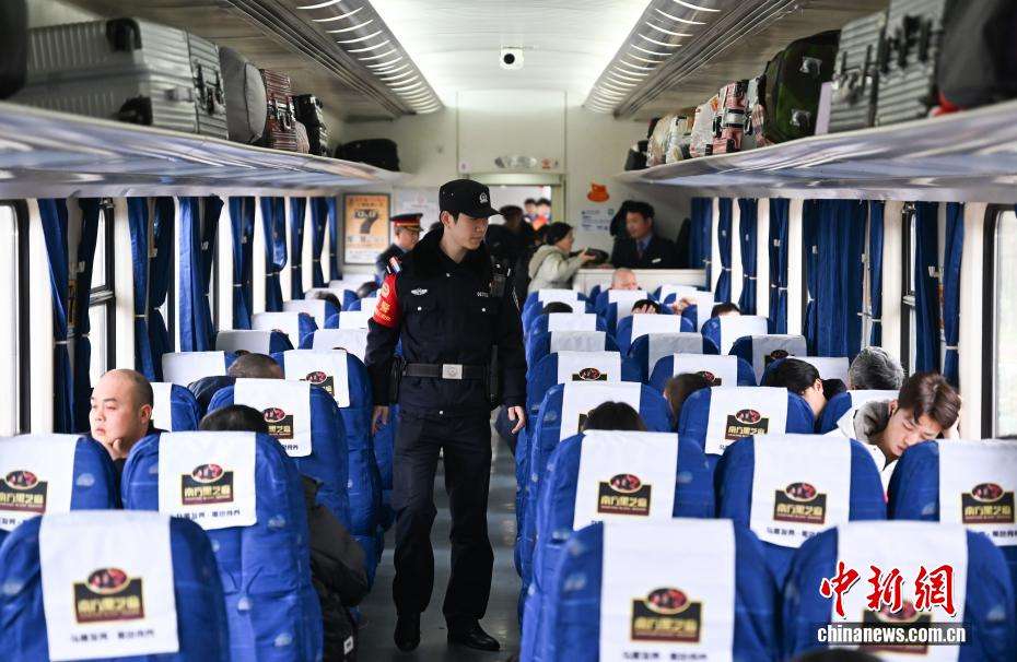 1月27日,乘警在K1248次车厢内巡逻。中新网