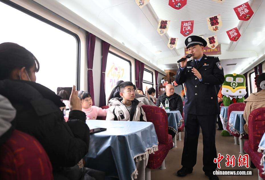 1月27日,列车长为旅客普及安全知识。中新社