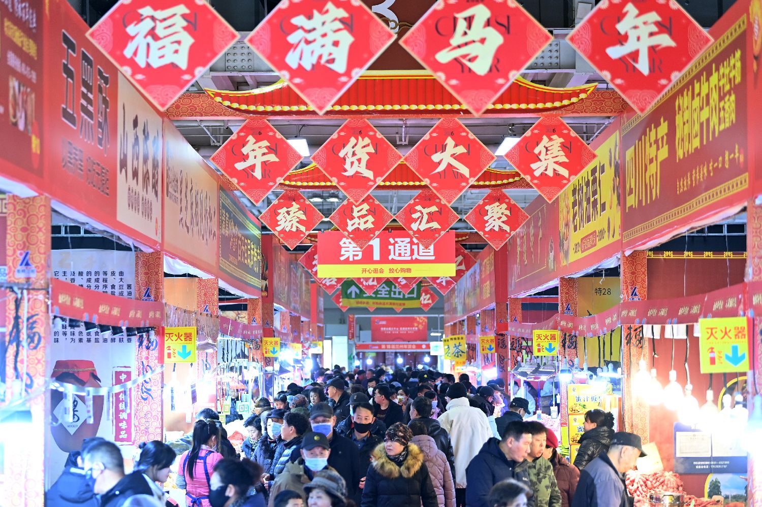 1月28日,第十届兰州年货会在甘肃国际会展中心启幕,展出各地名优年货商品吸引民众选购。图为民众选购年货。中新社