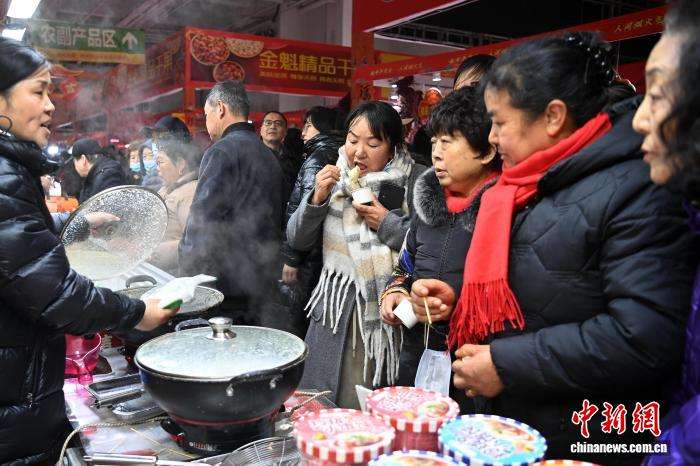 民众试吃展出的年货美食。中新网