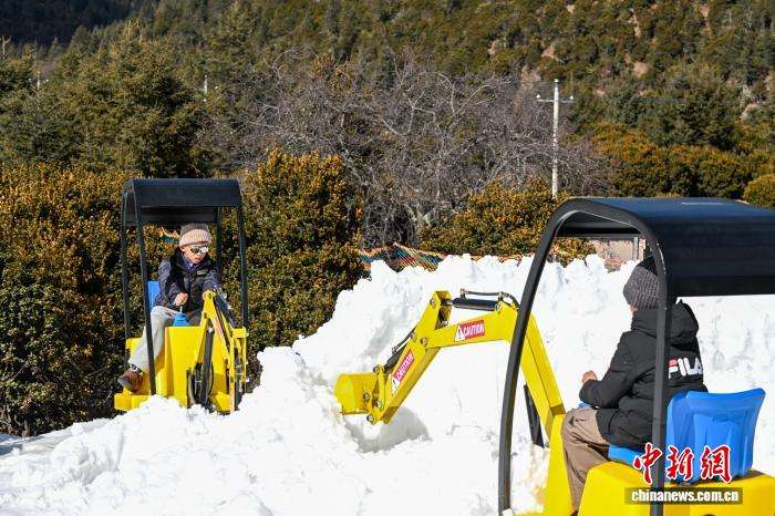 1月29日,游客在普达措嬉雪乐园内玩耍。中新社