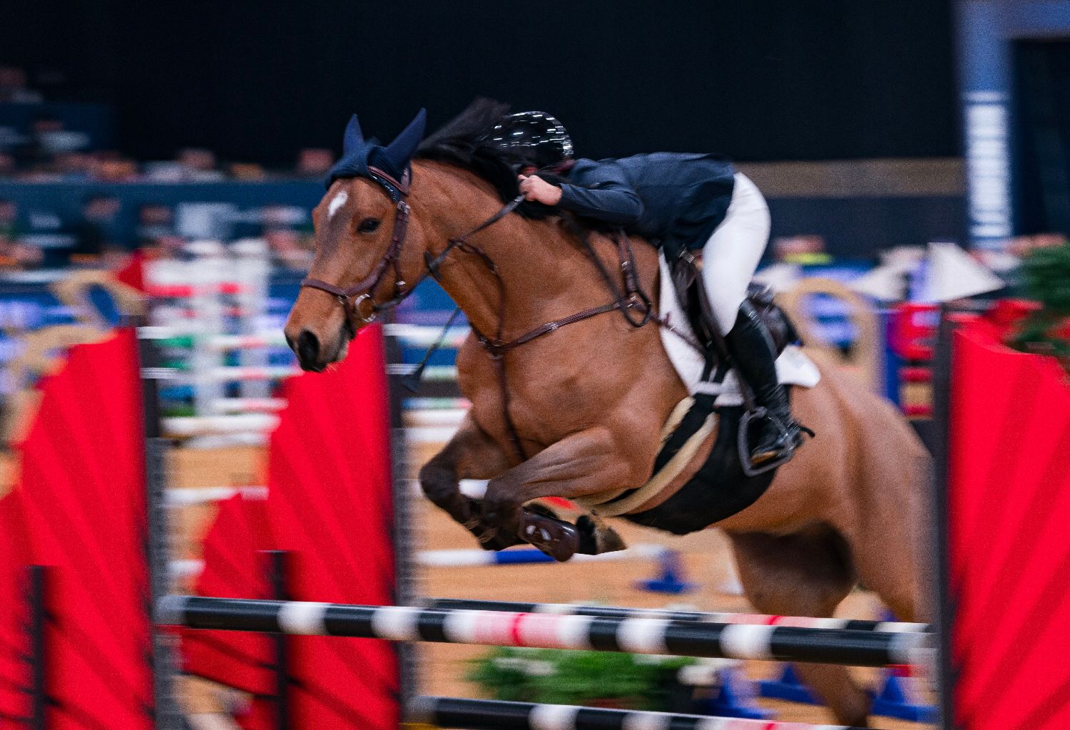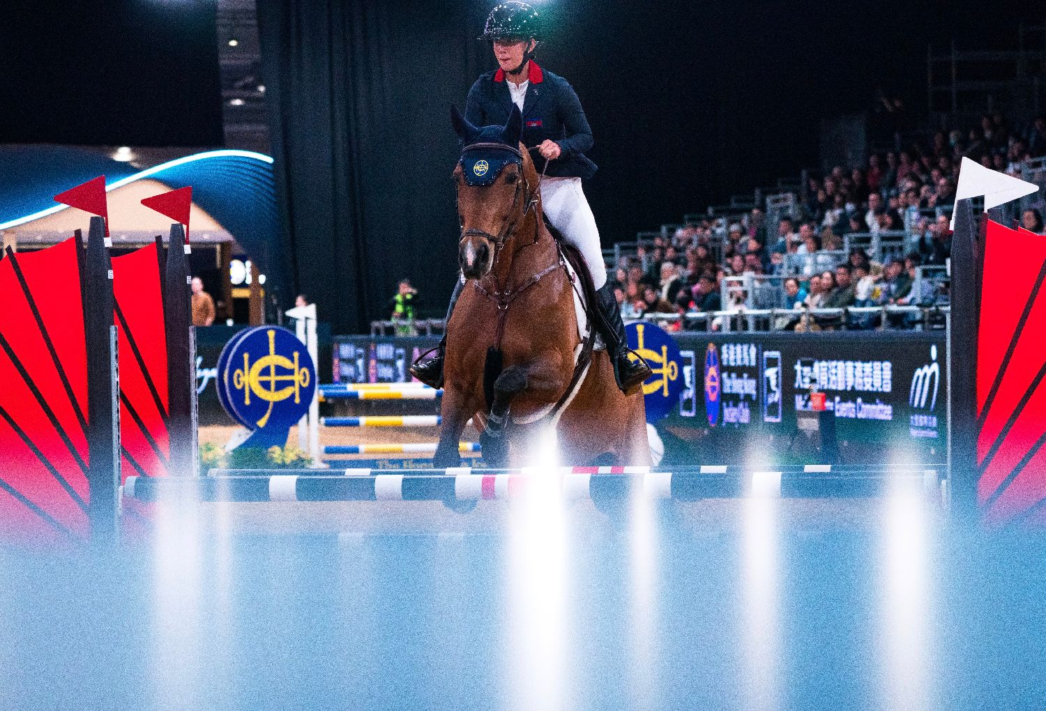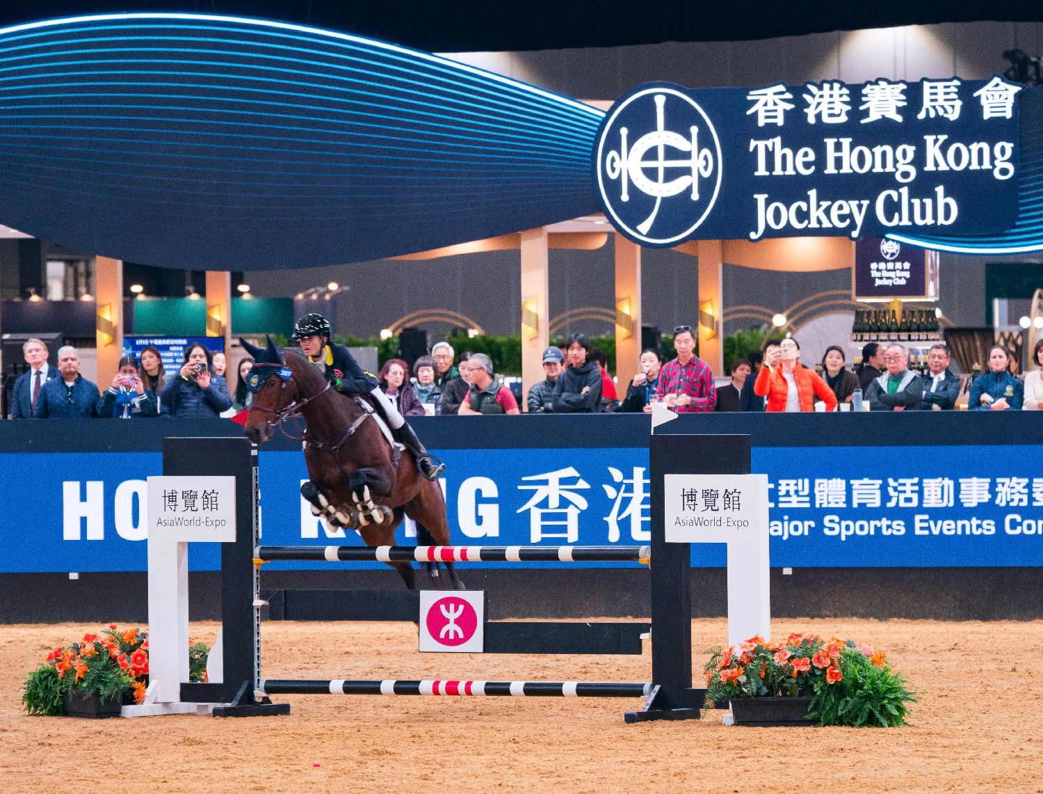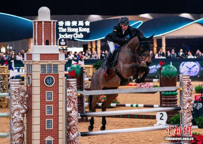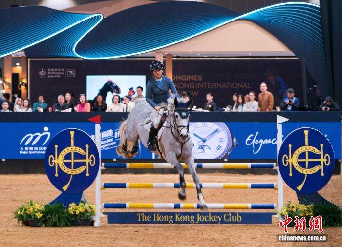 1月30日至2月1日,第二届浪琴香港国际马术盛典在香港亚洲国际博览馆连日上演。除马术障碍赛等精彩赛事之外,退役赛马音乐骑术表演、雪特兰小马大赛、狗狗障碍挑战赛等表演赛事连番上演,为观众呈现驾驭的魅力。赛场之外,与赛马相关的众多互动区域、纪念品店等,令来宾流连忘返。本届马术盛典由香港赛马会作为策略伙伴进行全力支持。图为2月1日的亚洲青年挑战赛中,骑手驾驭马匹越过障碍。中新社