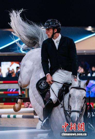 1月31日的马术障碍赛中,骑手驭马跃障。中新网