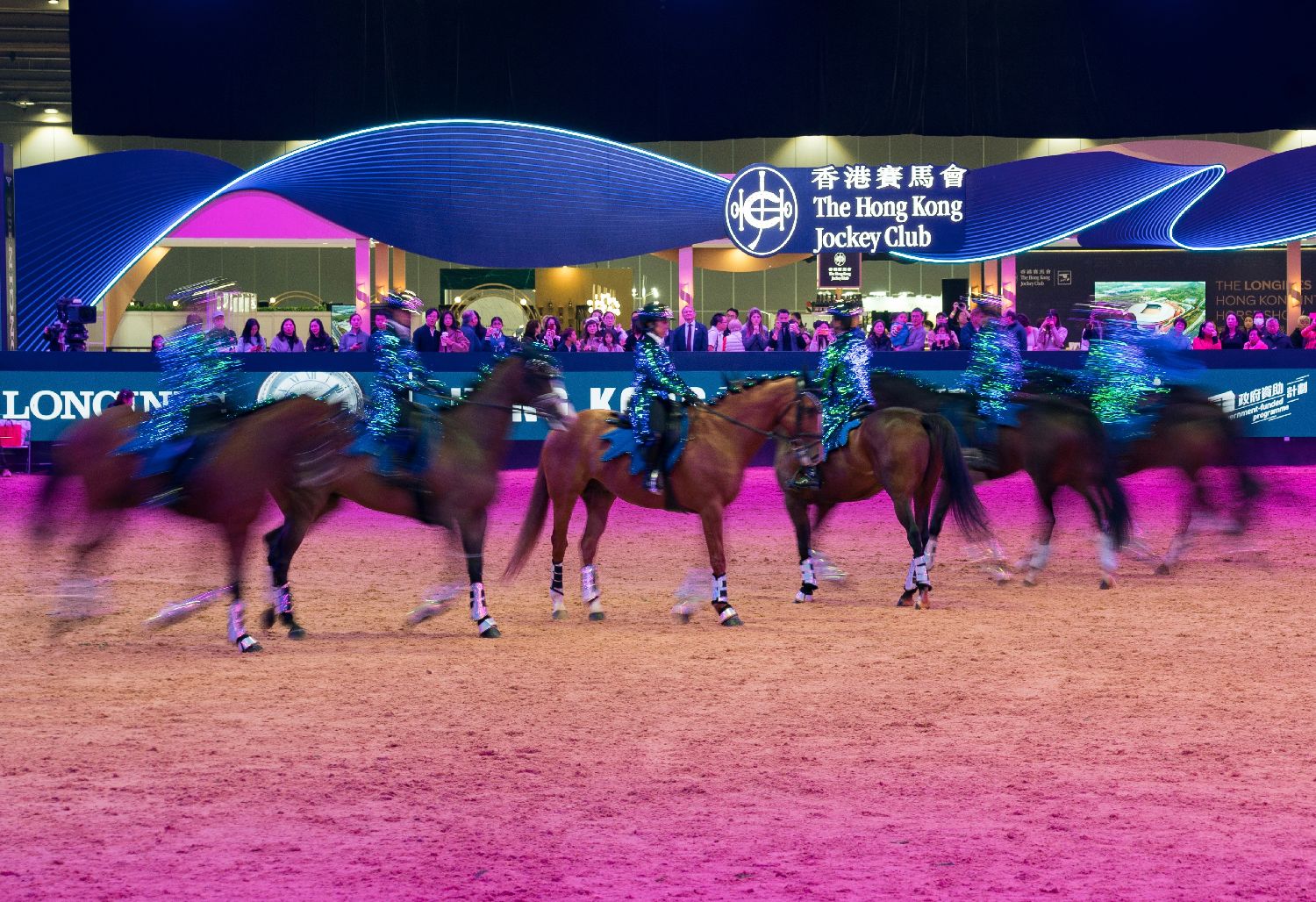 2月1日,骑手驾驭退役赛马进行音乐骑术表演。中新社