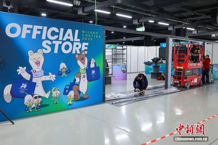 当地时间2月2日,主媒体中心内的官方特许商品销售店还在装修。中新网