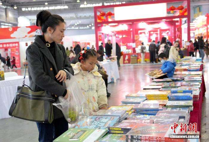 市民在新春年货购物节上的图书展区选购图书。中新网