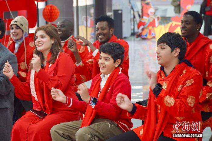 2月3日,外国居民一起唱歌。中新网