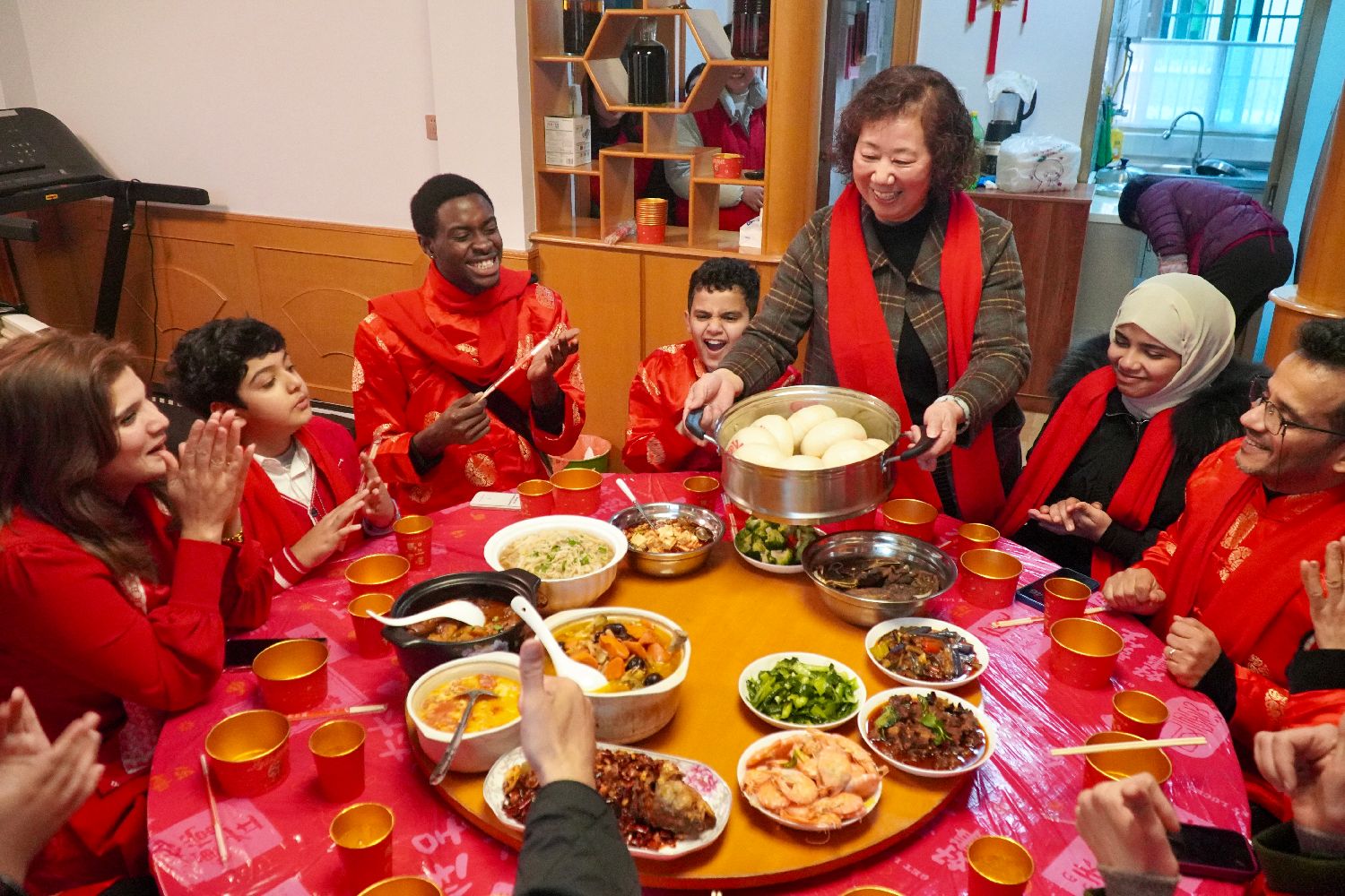 2月3日,中外居民喊出“新年快乐”。中新网