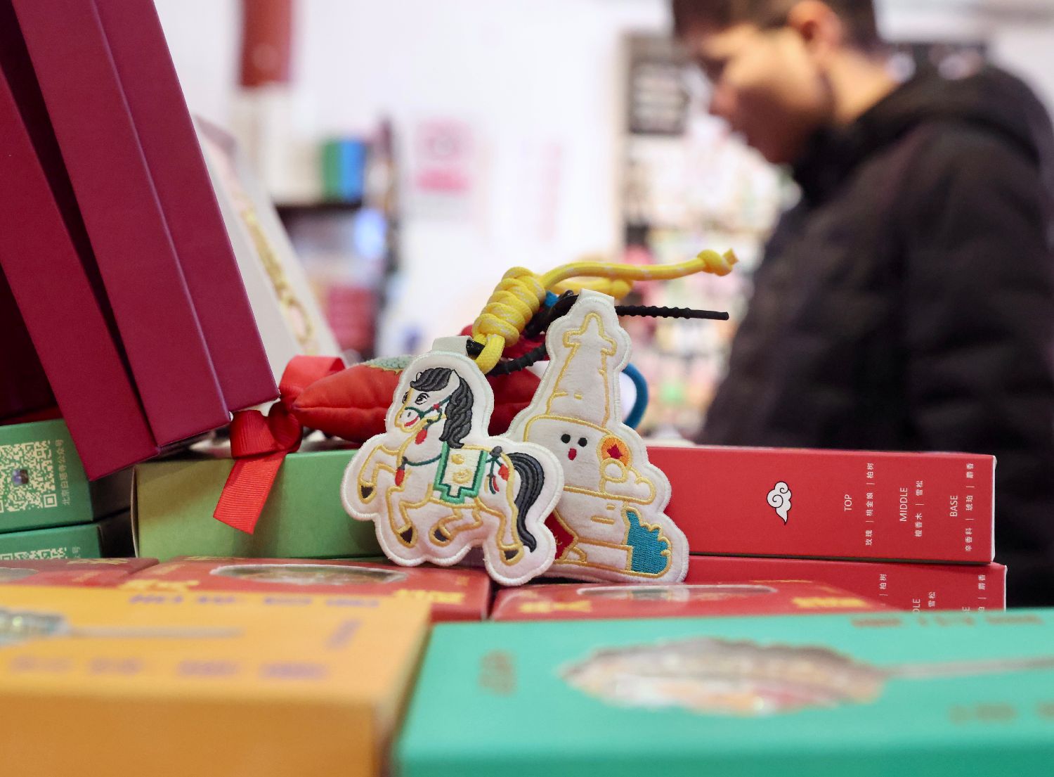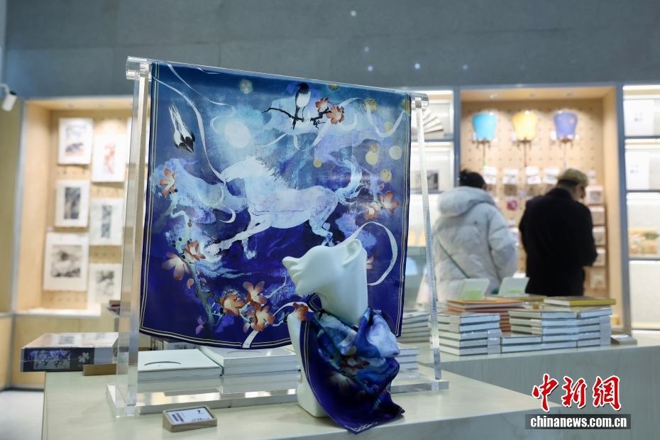1月15日在位于北京的徐悲鸿纪念馆文创空间拍摄的马年主题丝巾。中新网