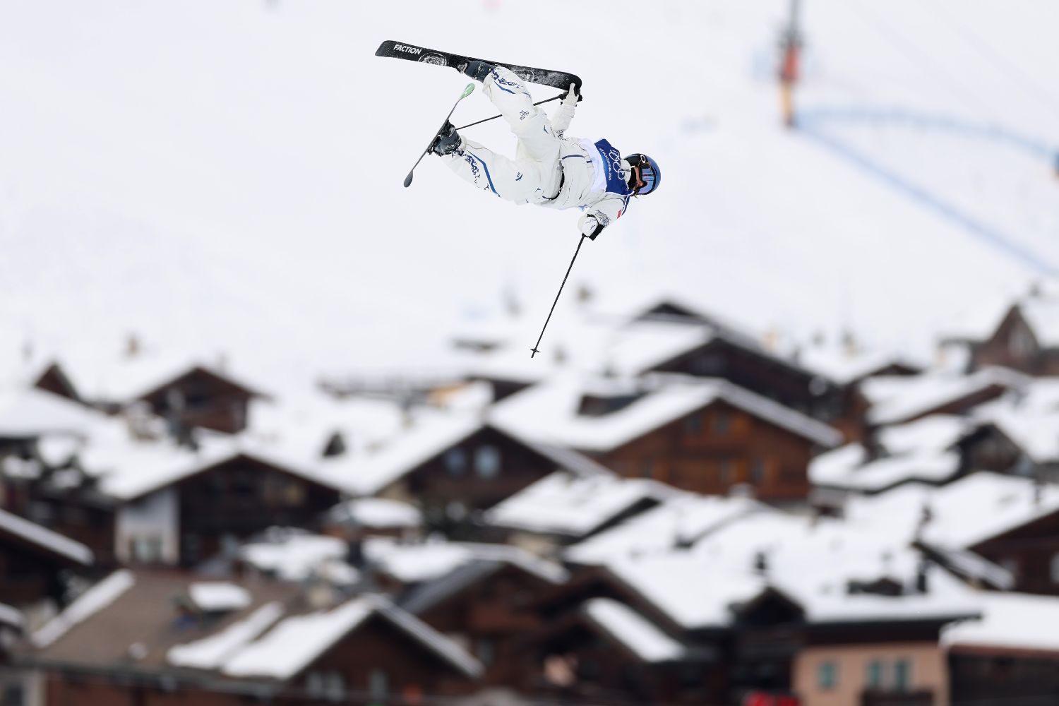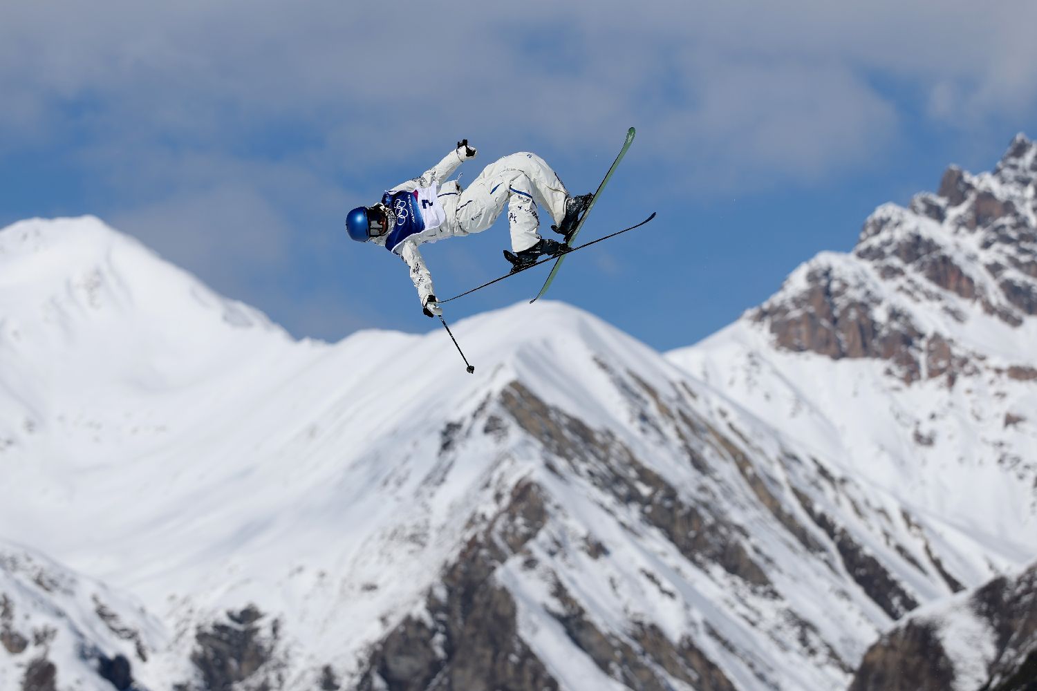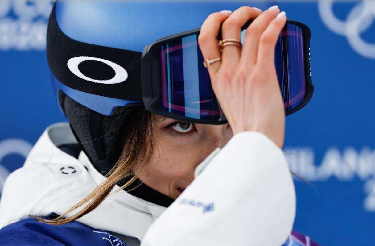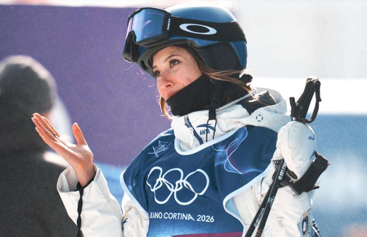 当地时间2月9日,2026年米兰-科尔蒂纳冬奥会自由式滑雪女子坡面障碍技巧决赛在意大利利维尼奥雪上公园举行。中国选手谷爱凌以86.58分摘得银牌。图为谷爱凌获得银牌后举起滑雪板。中新社