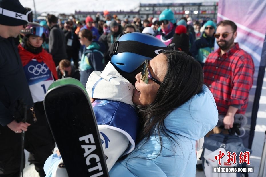 赛后谷爱凌(左)与母亲拥抱。中新网