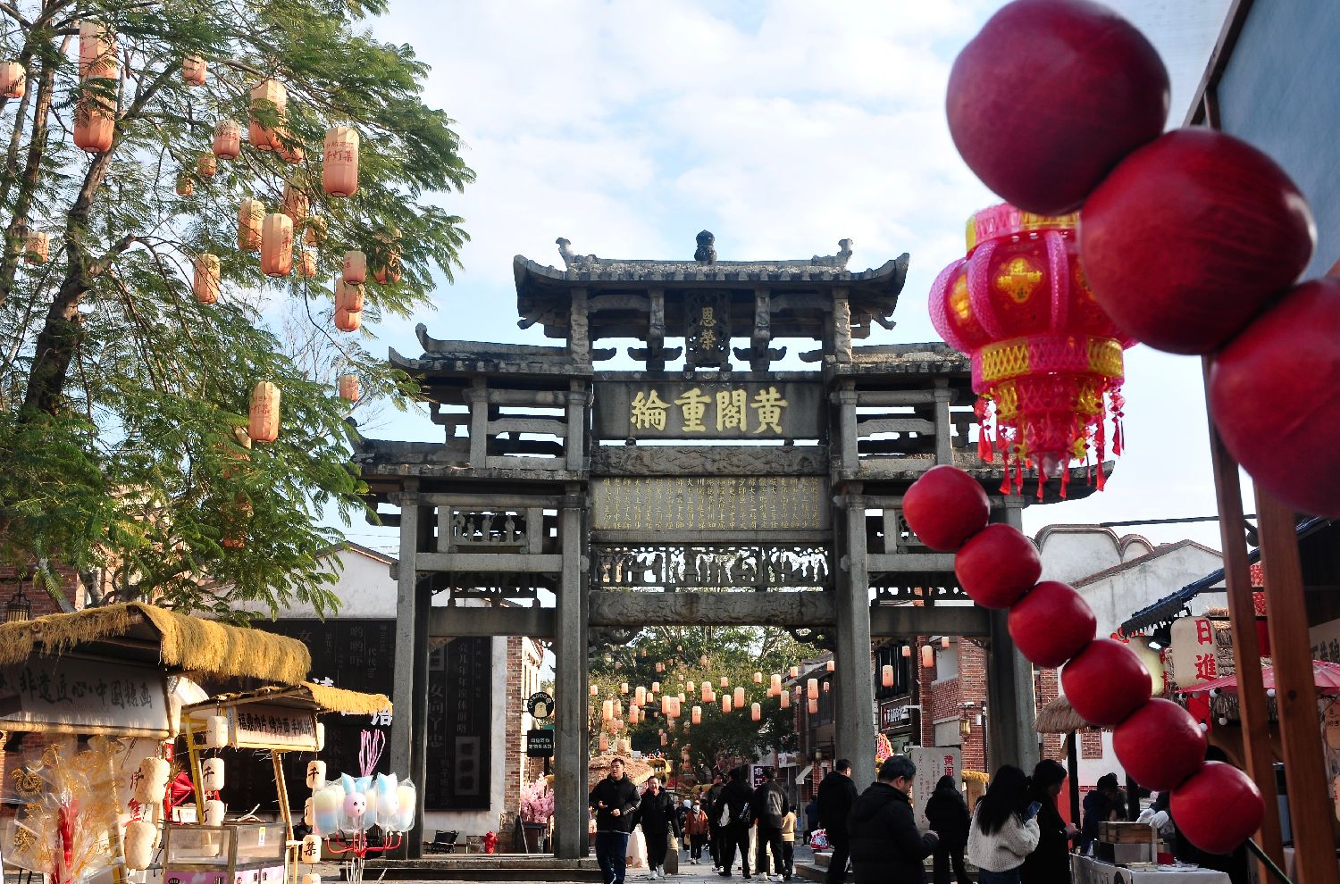 位于福建福州福清市的利桥古街历史悠久,曾是咽喉要塞、交通枢纽、繁华之地,留下了瑞云塔、黄阁重纶坊等古建筑,成为海丝文化和华侨文化的见证。近年来,利桥古街作为福州市15个特色历史文化街区之一,不断加大保护修缮和活化利用的力度,激发了新活力,焕发了新光彩,成为侨乡福清的文化新地标。图为2月10日,在福清市利桥历史文化街区上拍摄的福清历史标志性建筑物——黄阁重纶坊。中新社