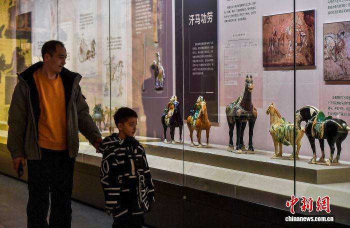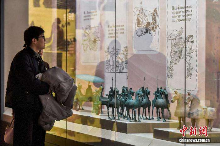 参观者观看车马文物简介。中新网