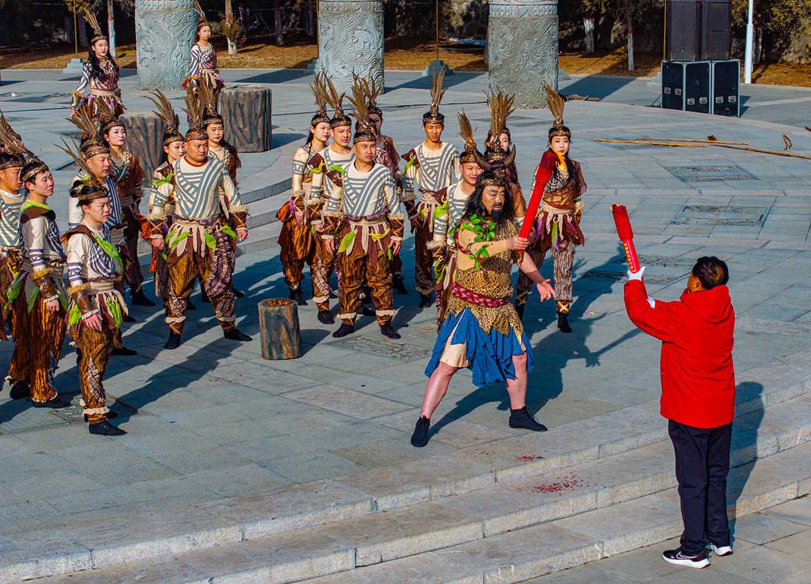 羊头山庄严肃穆,随着钻木取火仪式的完成,神圣火种被瞬间点燃。山西高平市政府网